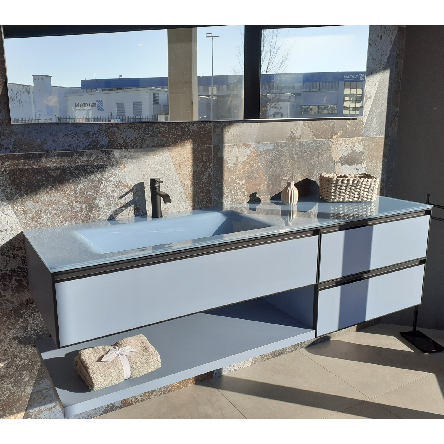 ARBI LACCATO AZZURRO CERULEO l.176 p.51 ( interasse lavabo da sx 52,5 cm )